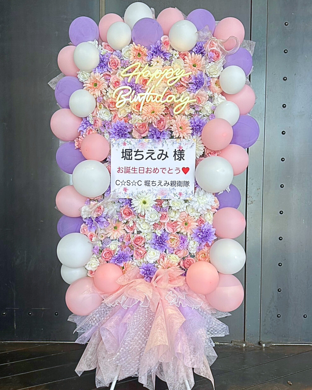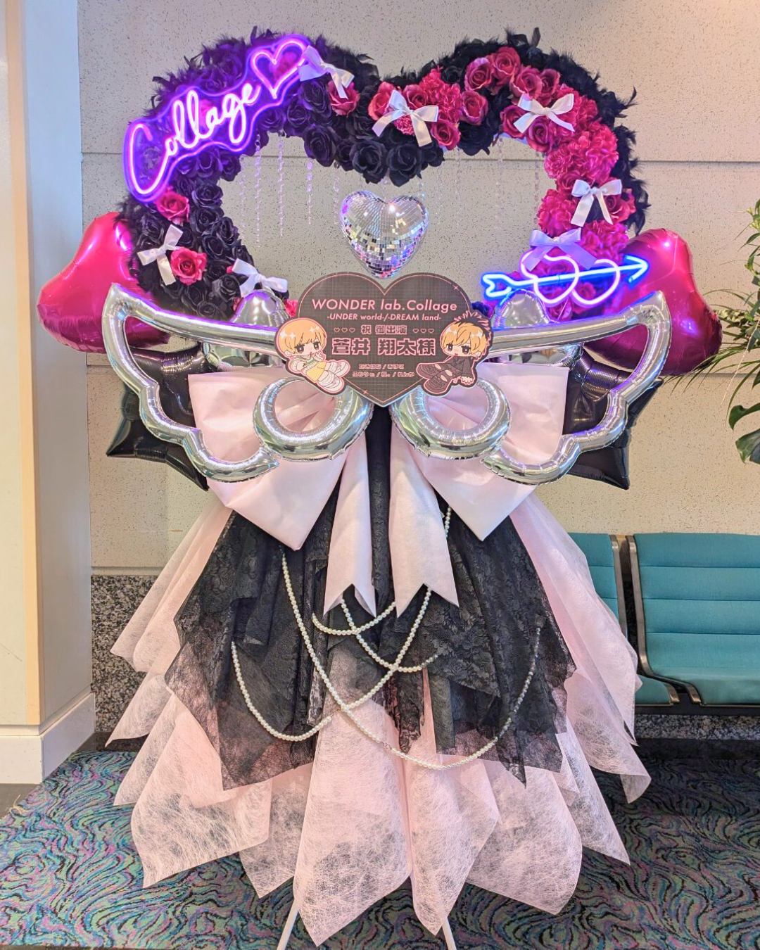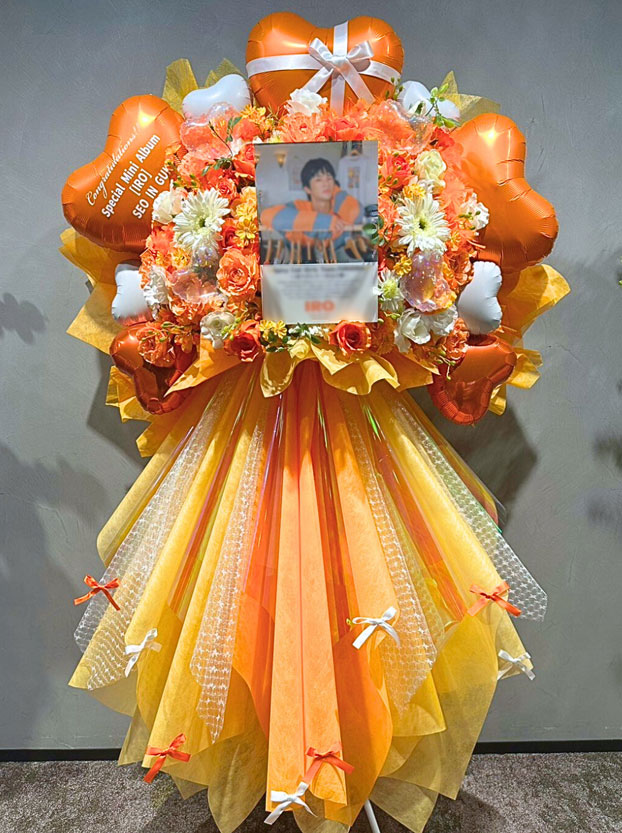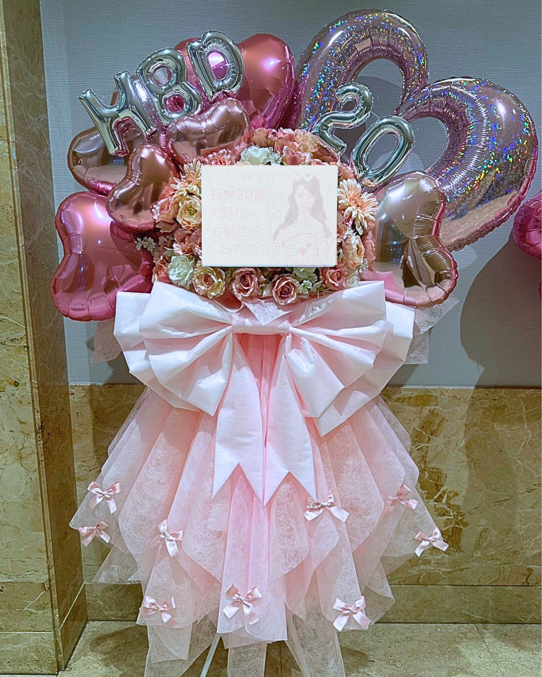 ジュエルフラワーのフラスタに使用するお花は全てアーティフィシャルフラワーを使用しております。アーティフィシャルフラワ ーとは、生花の一番キレイな頃合いを再現した上質な造花です。生花と見劣りしない美しさが特徴です。アーティフィシャルフラワーを使用していることで数日間の公演や、長期間の設置も可能となります。また、 装飾品もこだわっており、 自社特許を取得している大きなお花や海外から直輸入している資材など他店と被らない装飾品も特徴です☆